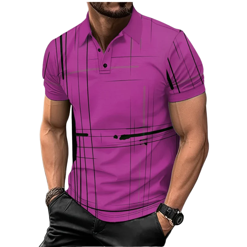 This men's short sleeve polo shirt combines casual style with practical features for year-round wear. Crafted from breathable polyester knit fabric, it ensures comfort and ventilation throughout the day. The solid color design is enhanced by a 3D striped digital print and functional zipper details, adding a modern touch. Its regular fit and short sleeves make it ideal for daily use in any season, offering both style and ease of movement.