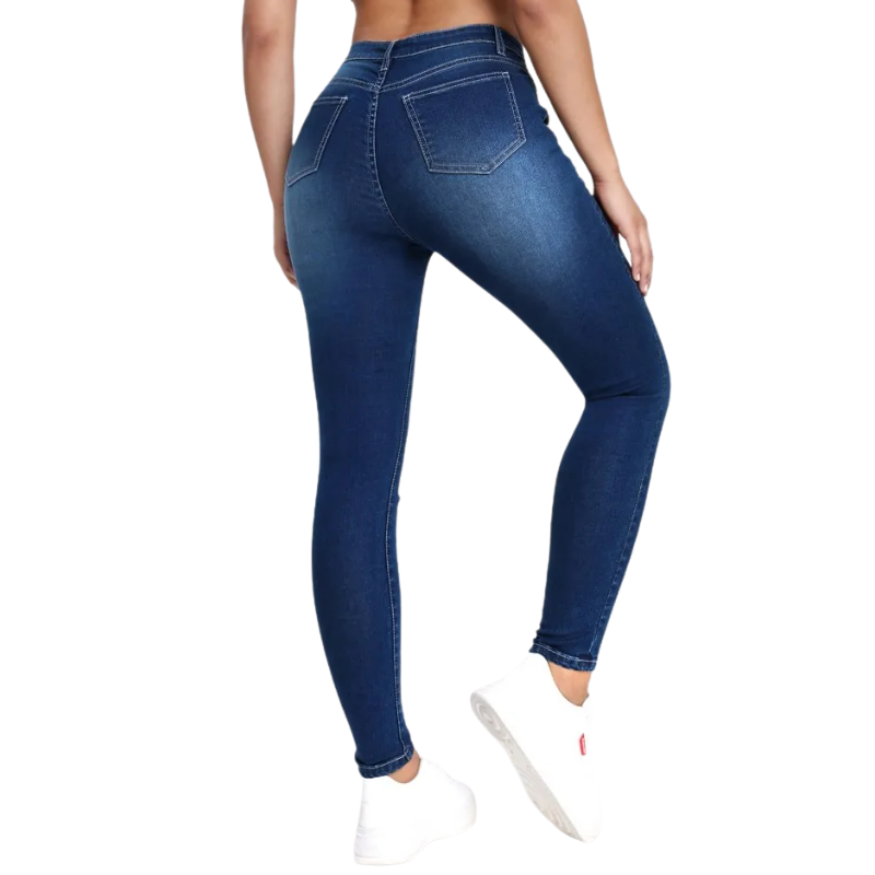 These blue elastic skinny jeans combine high-stretch cotton denim with polyester and spandex for a comfortable, form-fitting wear. Featuring a high waist and ankle-length cut, they offer a sleek pencil pants silhouette enhanced by subtle fake zipper details. Crafted with a tat weaving technique, these all-season jeans provide regular thickness and a high street style ideal for both European and American fashion preferences. The zipper fly closure ensures easy wear, while the fabric’s elasticity supports movement without compromising shape.