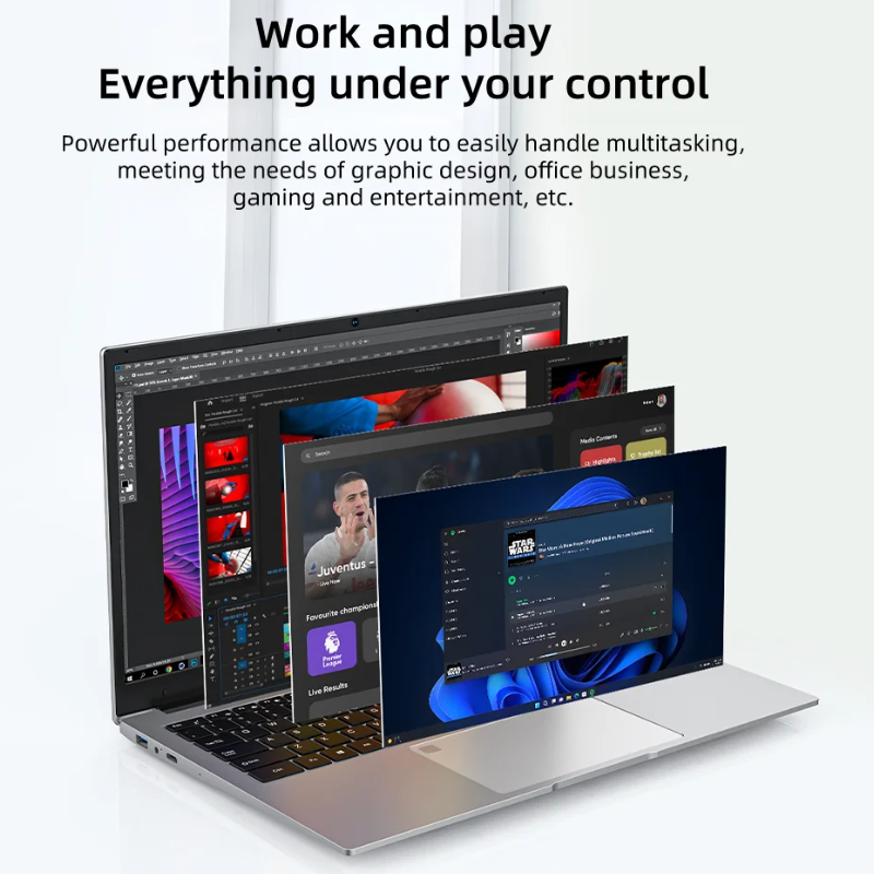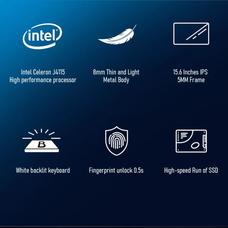 The BYONE 15.6" Laptop combines a sharp 1920x1080 IPS display with an ultra-slim design, delivering clear visuals and wide viewing angles. Powered by a J4115 processor, 8GB RAM, and options for 128GB to 1TB SSD storage, it offers smooth performance for everyday and gaming tasks. Integrated features like a built-in camera, speaker, USB port, and support for vertical mode enhance versatility. Certified CE and FCC compliant, this laptop ensures reliable connectivity with a 60Hz refresh rate and a 16:9 display ratio for balanced productivity and entertainment.