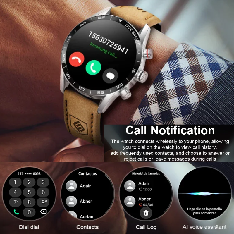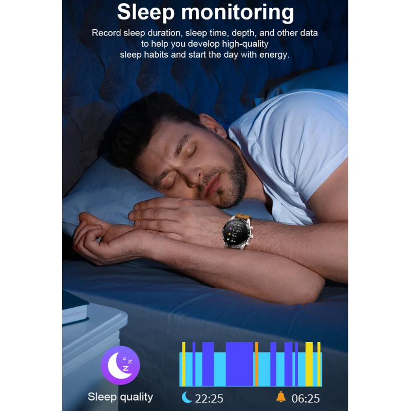 This rugged military-grade smartwatch offers a 1.39-inch AMOLED display with GPS, continuous heart rate monitoring, and comprehensive activity tracking including steps, distance, calories, sleep, and mood. Equipped with a MediaTek ST2 CPU and Bluetooth 5.2, it supports call handling, message reminders, and interactive music control. Its durable alloy case and waterproof design ensure resilience in demanding conditions, while the detachable leather band adds comfort and style. With a 220-300mAh battery delivering up to 5 days of use and compatibility across all devices via the GloryFit app, this smartwatch combines performance with practical features for an active lifestyle.