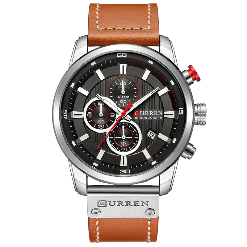 This men's chronograph sport watch combines functionality with contemporary design. Featuring a robust 45-49mm round alloy case with a 12mm profile, it delivers a commanding presence on the wrist. The Hardlex crystal protects a numberless dial while the quartz movement ensures reliable timekeeping paired with automatic date display and chronograph capabilities. A genuine leather band secured by a buckle clasp provides comfort and durability. Water-resistant to 3 bar, it handles everyday moisture exposure with confidence. Ideal for those seeking a versatile timepiece that transitions seamlessly from casual wear to active pursuits.