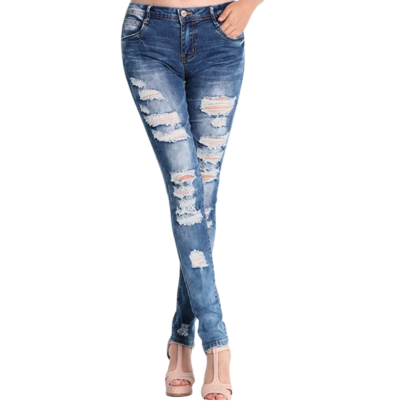Slim Elastic Fit High-Waist Ripped Skinny Jeans for Women
