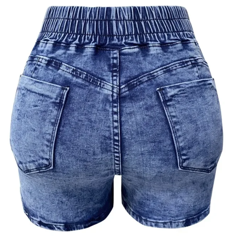 Slim Fit, Pleated, Summer Women's Mid-Waist Denim Shorts