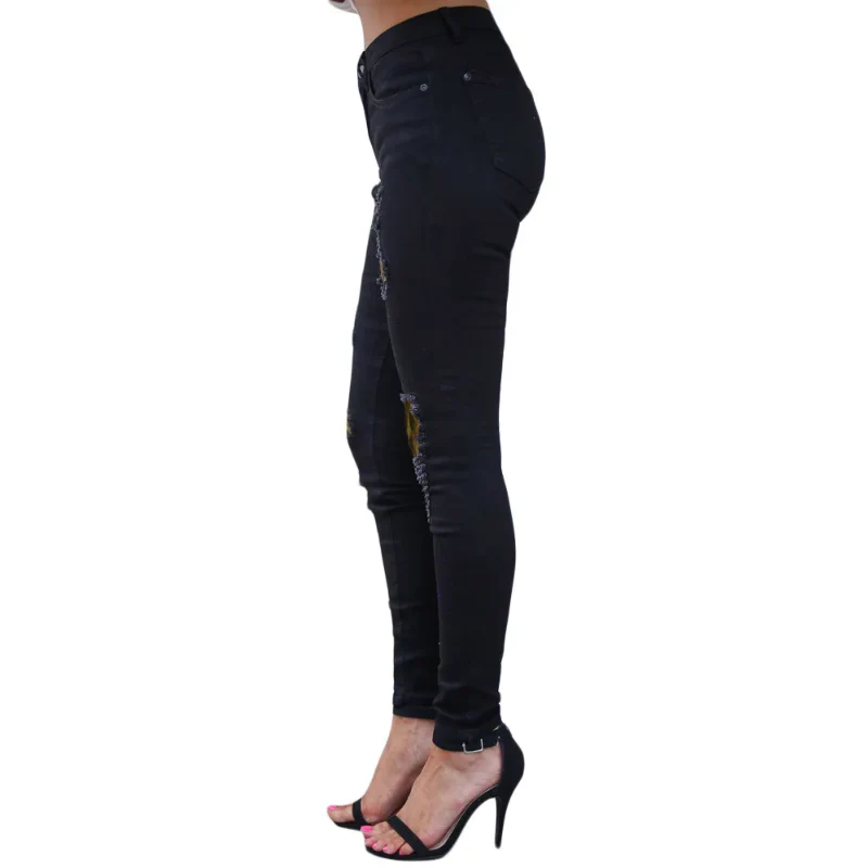 Stretch Denim Hipster Style Women’s Ripped Leopard Skinny Jeans