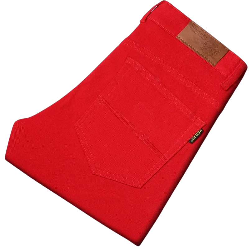 Men's Slim Fit Cotton Business Pants Crafted from midweight denim with subtle stretch, these slim-fit jeans deliver comfort without compromising structure. The medium wash creates a versatile foundation for both casual and smart-casual styling, while delicate embroidery detailing adds understated sophistication. Featuring a mid-rise waist and full-length cut, the zipper fly closure ensures reliable durability. The tatted weaving technique enhances fabric quality and longevity. Perfect for year-round wear, these jeans transition seamlessly from weekend outings to business-casual settings. The slight elasticity provides freedom of movement throughout the day, making them an essential wardrobe staple for the modern professional.